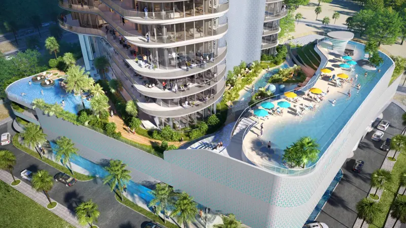 Resort-Inspired Amenities: Multiple swimming pools including private pools on select floors, fully equipped fitness centres, lush landscaped gardens, and resort-style dining and leisure facilities.