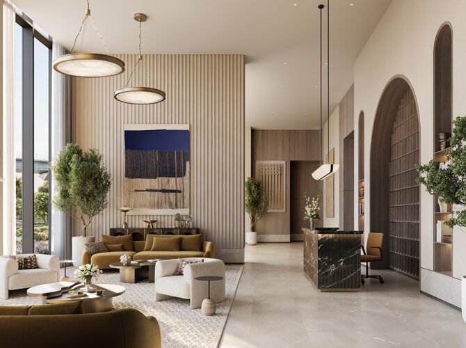 Lyvia by Palace is a bold new residential tower located in the Green Gate of Dubai Creek Harbour. This is more than just a home; it’s a branded sanctuary designed for luxurious, nature-inspired living. With stunning greenery as its backdrop and a sleek, contemporary design, Lyvia perfectly balances the tranquility of nature with vibrant urban energy. It offers an exclusive, elegant lifestyle where architecture and prestige meet the calm of the natural world.