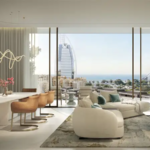 Designed as three connected 12 story towers, this eye-catching structure features a front with gentle tones and powerful geometric shapes. Large glass windows and cozy balconies are features of sunlit residences. Open living areas encourage gathering and leisure, and a grand entrance with rich flora greets occupants. Luxurious four-bedroom homes provide magnificent terraces with sweeping views of the contemporary skyline and the Burj Al Arab, guaranteeing a remarkable living experience.