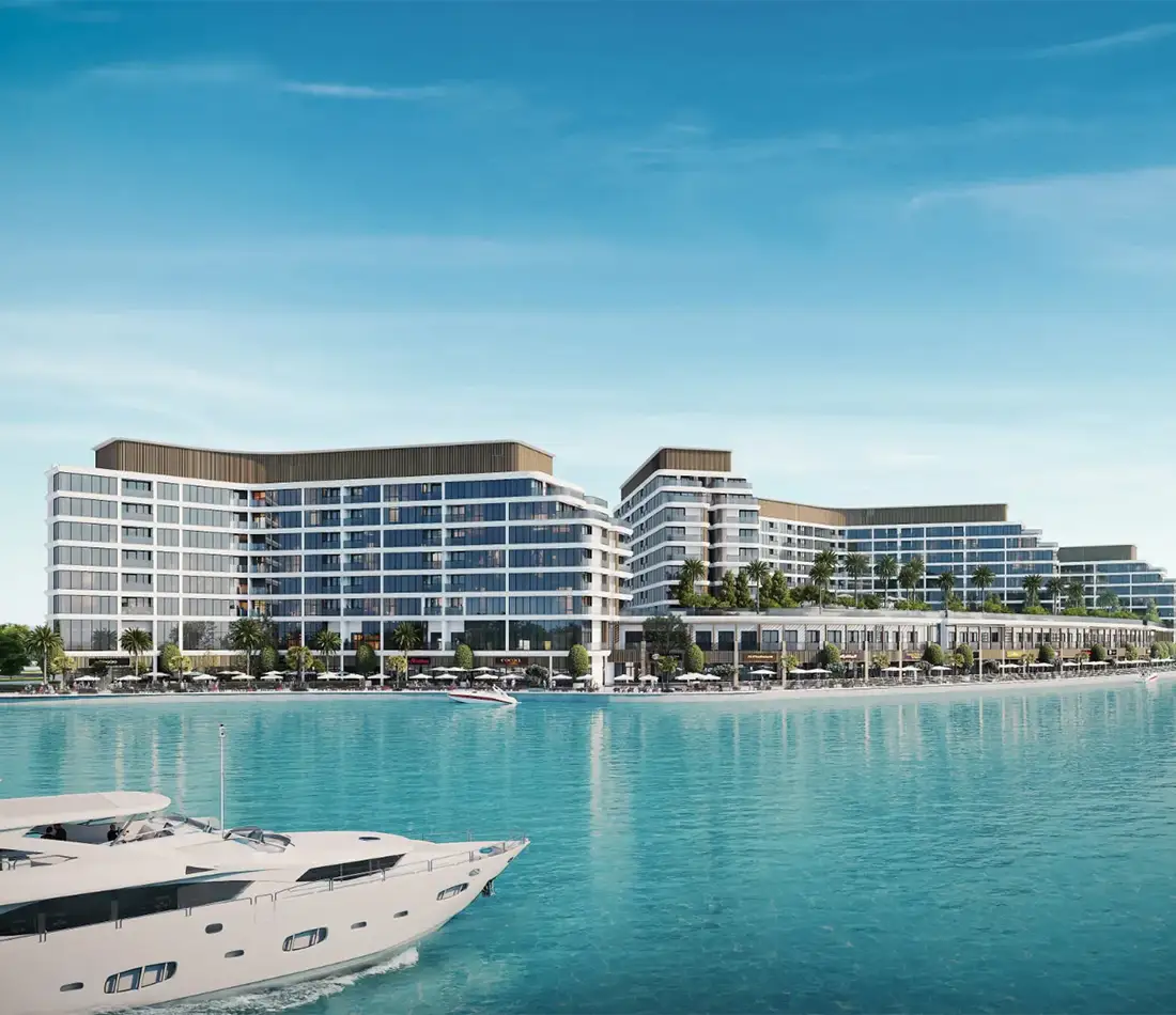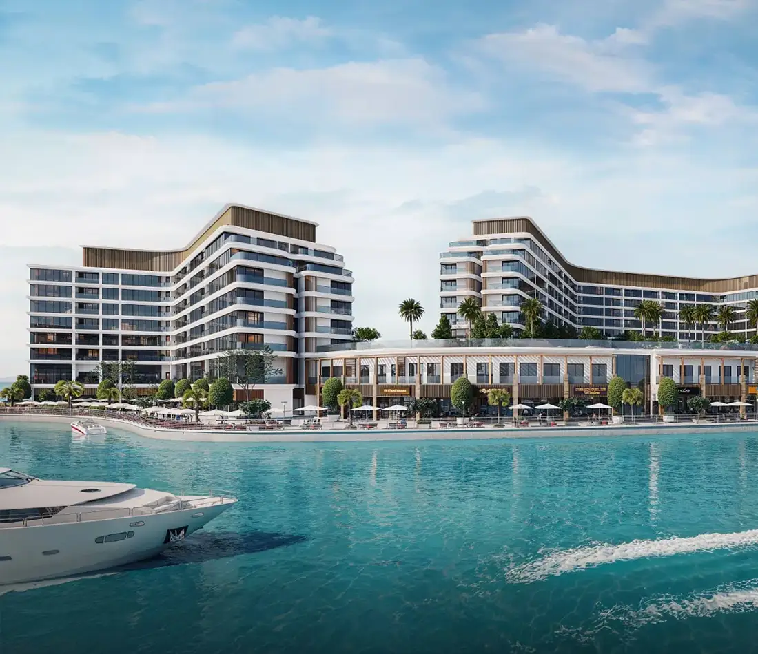 Luxury by the water: Twin towers offering refined apartments with sweeping views of the marina, canal, and open sea, embodying a premium coastal lifestyle.